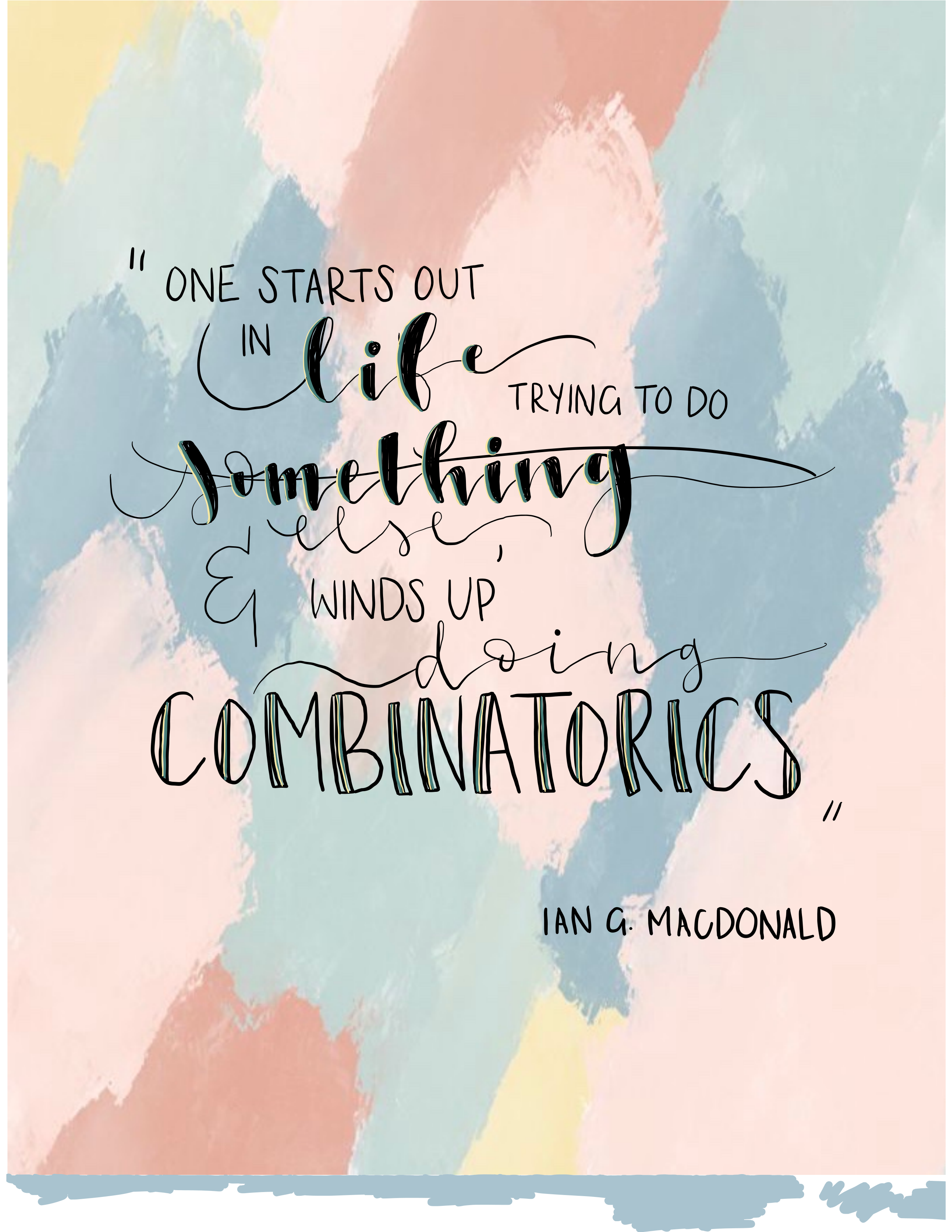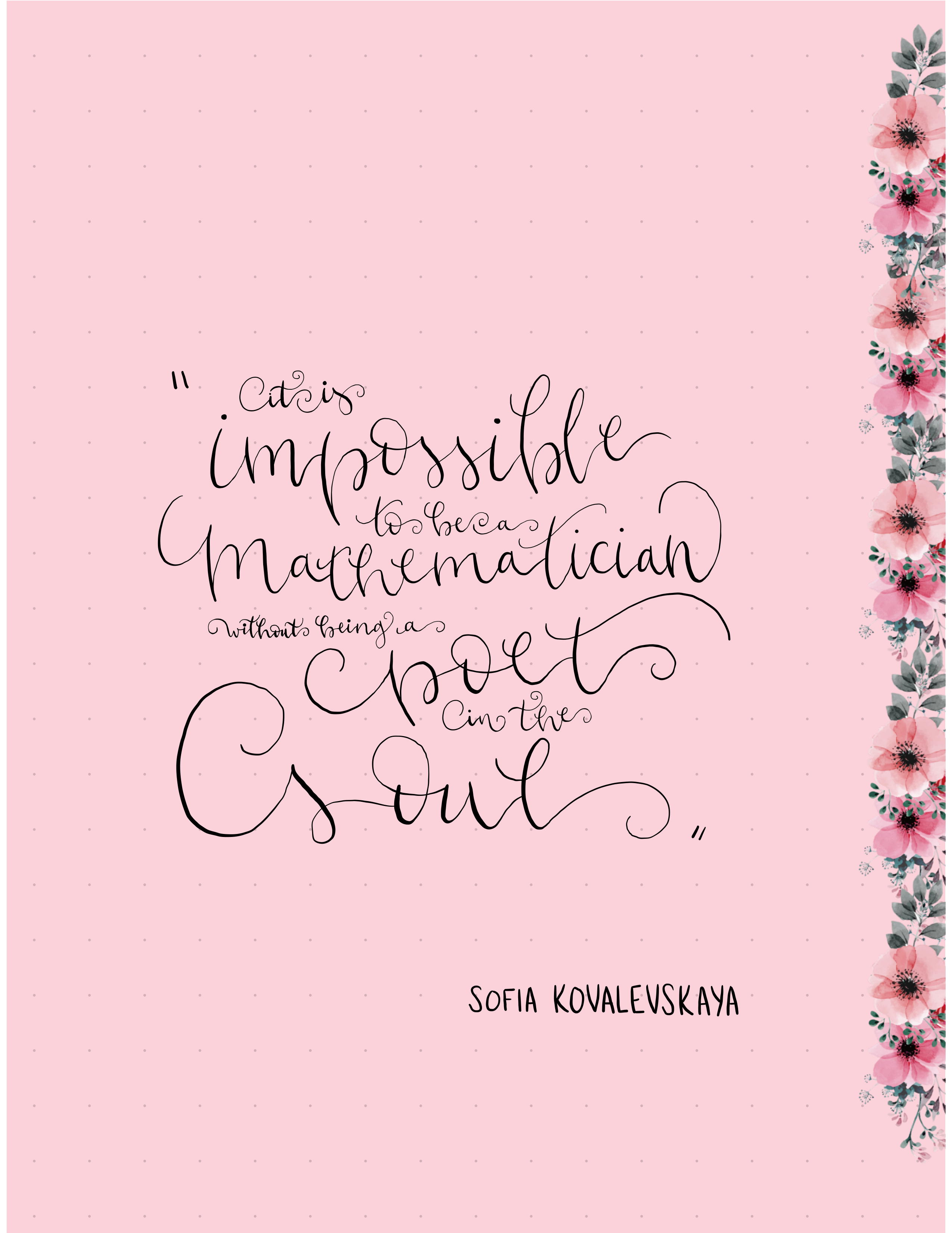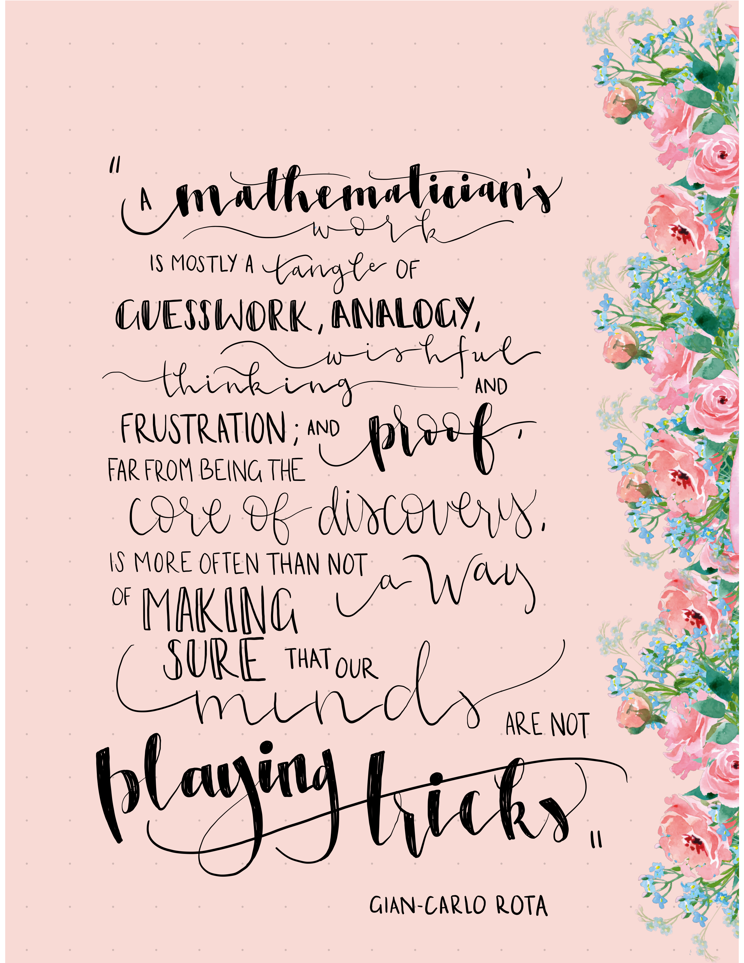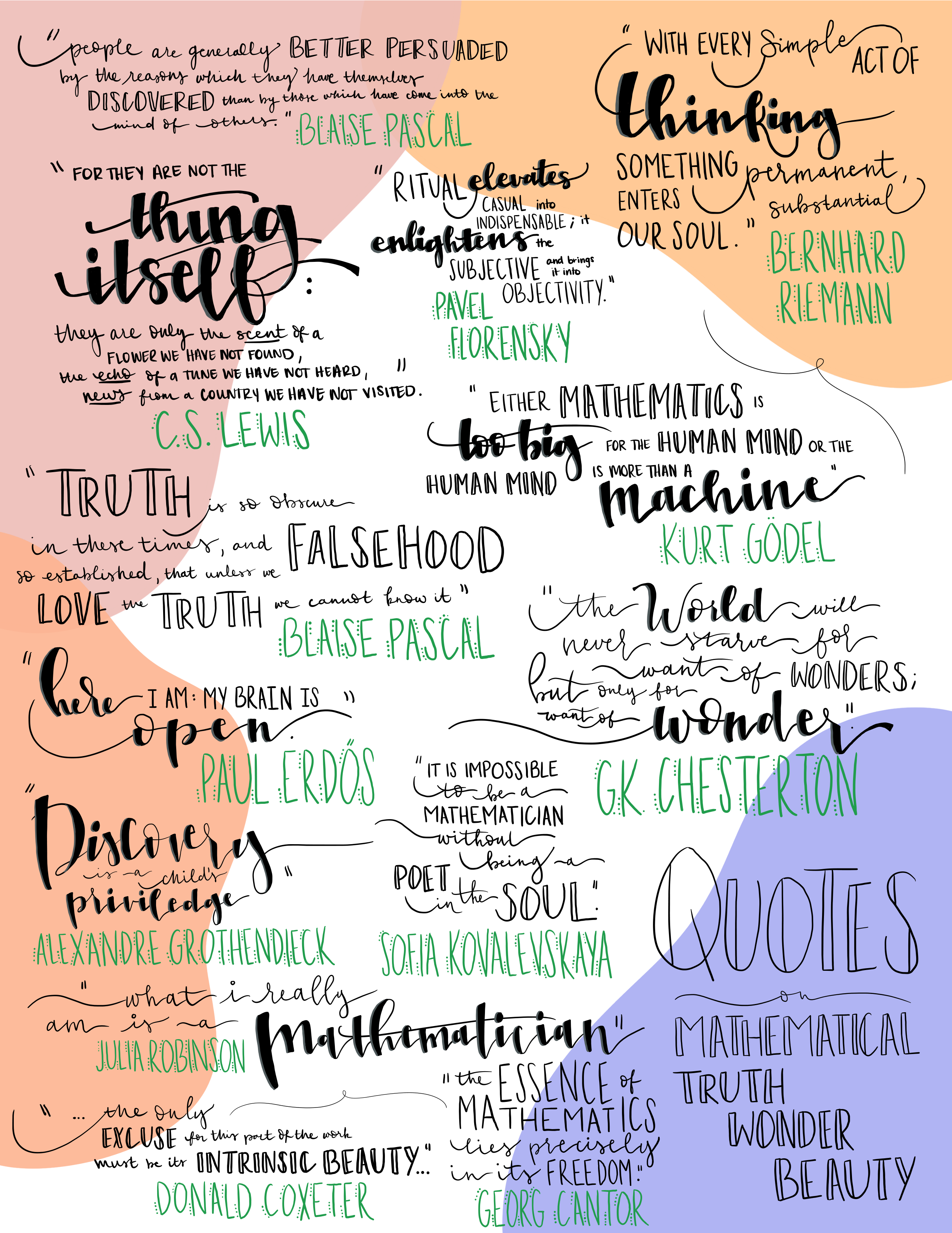 Here are a few pieces of my calligraphy, all featuring mathematical quotes. I am always looking for new inspiration; feel free to reach out!